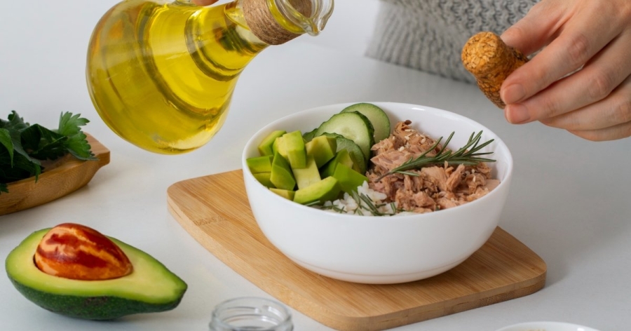 “Оливкова олія в основному складається з мононенасичених жирів”, — каже Салазар. Крім того, оливкова олія багата на антиоксиданти, які допомагають організму боротися з окислювальним стресом. “Крім використання оливкової олії для приготування їжі, спробуйте додати її в салат або хумус”, — радить Салазар. “Ви також можете подавати її з хлібом, додавати в соуси і [використовувати як] маринад”, — додає вона.